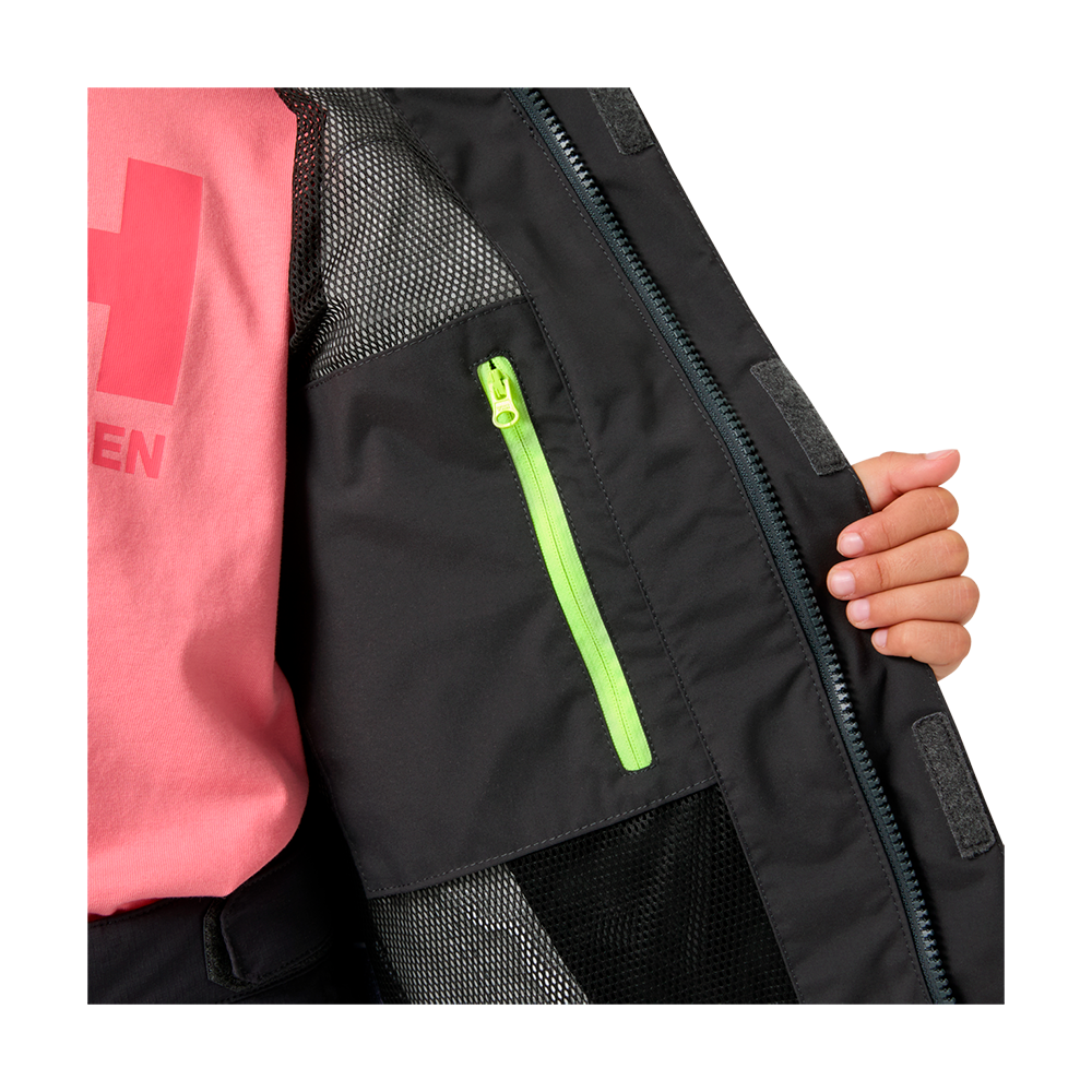 Die technische Salt Port 2.0 Jacke ist perfekt für Segelabenteuer und hält dein Kind dank des wind- und wasserdichten sowie atmungsaktiven HELLY TECH® Performance-Materials warm und trocken.