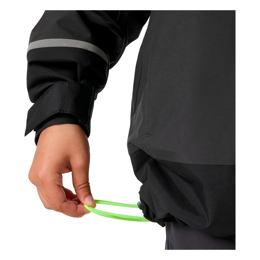 Die Passform lässt sich über Kordelzug am Saum und Klettverschlüsse an den Bündchen anpassen. Der widerstandsfähige YKK-Reißverschluss ist durch eine Innen- und Außensturmklappe geschützt, die verhindert, dass Wasser und Wind durch den Reißverschluss gelangen.