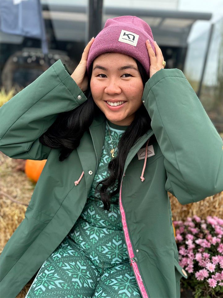 Kari Traa Tuva Parka er skabt til vinterdage, hvor du ønsker både varme, komfort og et feminint udtryk. Den løstsiddende pasform giver plads til bevægelse, mens det fuldt foret design og de tapede sømme på udsatte steder holder kulde og vind ude. Med en vandafvisende overflade (5.000 mm) og en åndbarhed på 5000 g/m2 får du pålidelig beskyttelse i skiftende vejr.